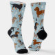 Cute dachshunds in many different colors and coat patterns with paws and bones pattern.