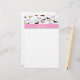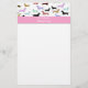 This fun writing stationery features little colorful dachshund dogs at the top. A graphic of a pink ribbon runs across the top waiting for your customized text.