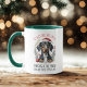 Dachshund Through The Snow Doxie Christmas Coffee Mug features a modern illustration of dachshund dogs wearing a Santa hat in a floral wreath with the text "Dachshund through the snow on a one horse open sleigh" in modern script typography. Perfect for birthdays, Christmas and the holidays as gifts for family and friends, dog lovers, dog mom, dog dad, dog sitter and more. Personalize by editing the text in the text box provided. Created by Evco Studio www.zazzle.com/store/evcostudio