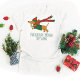 Digitally drawn Christmas Dachshund wearing red and green sweater and cap.