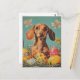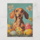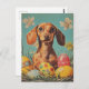 Celebrate Easter with the charming Dachshund in this vintage-style postcard. Featuring the adorable dog surrounded by colorful Easter eggs, blooming spring flowers, and festive seasonal accents, this design is perfect for Dachshund lovers, collectors, and fans of nostalgic holiday art. A delightful keepsake to bring Easter cheer.