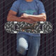 Dachshund wiener dog skateboard with black and white bones. Let's go!