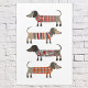 Cute little Dachshund sausage or wiener dogs in woolly knitwear. Perfect for dog lovers. Original art by Nic Squirrell.