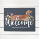 This unique red tan Dachshund doormat is a fun addition to your front door. The design features a cute watercolor dachshund illustration, combined with wildflowers and a trendy script font. Perfect for spring or summer outdoor decor. Easily personalize with your family name and year.