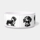 This dog bowl is a personalized and stylish accessory for your dachshund. The bowl has several minimalist icons of dachsthunds printed on it. You can also add your dog’s name below the icons, making it a unique and special item. The bowl is designed for both food and water, and it is easy to clean and durable. This dog bowl is a perfect gift for any dog lover or dachshund fan.
