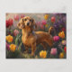 Dachshund with Spring Tulips Painting Postcard