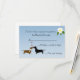 Cute dogs wedding response RSVP card done in blue, with adorable silhouette graphics of a brown and a black dachshund kissing, in the bottom left corner and a single white daisy in the upper right corner. Customize the fun curly text to suit your needs.