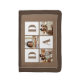 Give Dad a gift he'll cherish. This photo collage wallet features three of his favorite square family photos, along with the chunky brown letters "D-A-D" in alternating white squares on a brown background. An ideal gift for Father's Day, Dad's birthday or other special occasions.