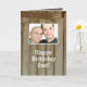 Upload your own image to this handsome, rustic dad's birthday photo card. You can also change the text to a Father's Day card if you choose. The cover image is of a real barn / workshop, and the card's inside is attractive, also. Not only can you personalize this rustic Happy Birthday Dad card (or Father's Day card) with your own text on the front and inside if you choose, you can also have a cursive signature printed in one or more names. You can also simply remove the signature text if you plan to sign it by hand. Yet another choice is to remove all the inside text, leaving the white space against the dark brown to add your own handwritten message on the inside. However you choose, Dads like having their special day remembered.