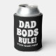 Dad Bods Rule funny personalized can cooler for drinks. Personalized beverage holder with humorous quote for men. Fun Birthday or Father's Day gift idea for dad, husband, daddy, father, grandpa, friend etc. Double sided print. Black and white or custom colors. Also available for beer bottles.
