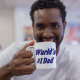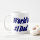 Mug with World's #1 Dad in 3D dark blue text. Mug available in several styles and colors.