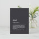 Modern black fathers day card with a unique definition of dad and "adored by" kids names below. Dark grey greeting card for him with white, minimalist type in dicionary style. Personalize the message on the back to match your occasion: "Happy Fathers Day" or "Happy Dad Day" or "We love you Dad" or "To the best dad ever" etc... If you enter the Design Tool you can also change the background color. Personalized minimalist greeting card for your Dad, daddy, papa or father on his special day.