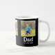 Celebrate fatherhood in style with this Dad Established photo coffee mug, featuring white script and space for three personalized photos. A heartfelt and practical gift for dads, this custom coffee mug is perfect for everyday use.