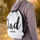 Black White Dad Established New Dad Gift - Minimal Elegant Script Dad Drawstring Bag - Add your custom "Est" established year date when your first child was born. Add additional years for each child.