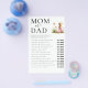 An elegant girl baby shower "guess which parent" game sheet for a girl baby shower party with an enchanted garden, magical fairy princess theme. An enchanting watercolor illustration featuring a sweet little fairy princess in a small enchanted garden with an emerald green, pink and gold color scheme, decorates this elegant and adorable baby girl shower custom personalized baby shower game sheet. Perfect for a springtime celebration, Easter events, a summer garden fête, or a charming picnic-themed baby shower, or for a year-round celebration in honor of a parent who loves the enchanted forest, fairy theme.