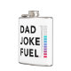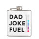 Cute and funny flask featuring text that says "dad joke fuel" in bold fonts with a fuel meter next to it. Perfect humorous gift for father's day.