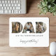 DAD birthday mouse pad personalized with 3 of your favorite photos which are displayed in the shape of the word DAD with the words "Love you forever and always!" Perfect for your dad!