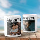 Dad Life is the Best Life 2 Photos Father Mug. This mug is the perfect gift for any dad out there who knows that being a dad is the best thing that has ever happened to him. The mug features the quote "Dad life is the best life" in bold letters that will make any dad smile. Add your favorite 2 family photos.