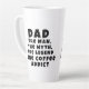 Dad Man Myth Legend Coffee Addict Funny Father's Day Latte Mug. Funny Father's day mug with humorous quote ' Dad, the Man, the Myth, the Legend, the Coffee Addict '. The text is in modern bold black typography. You can change any text on the mug.