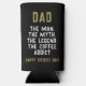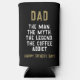 Dad Man Myth Legend Coffee Addict Funny Father's Day Seltzer Can Cooler. Funny Father's day can cooler with humorous quote ' Dad, the Man, the Myth, the Legend, the Coffee Addict '. The text is in modern bold typography. You can change any text.