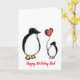 Happy birthday dad cute illustrated penguins. The child shown is holding a balloon that reads 50. The age and messages shown on this card can be personalized to any birthday or person. Perfect for a son or daughter to give their father on his special day.