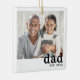 Simple Dad Personalized Classic Christmas Ornament. Celebrate fatherhood with this minimalist ornament featuring a single photo and the word “dad” in a clean serif font across the bottom for a classic, understated look. A white band runs along the bottom where the text overlaps the photo for a sleek finish.