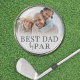 This personalized golf ball marker features a soft white gradient design with a mix of gray serif and handwritten script fonts for a clean and elegant look. The phrase "Best Dad By Par" is thoughtfully displayed, with space below for a short custom message in script—like a heartfelt note or any words of your choice.