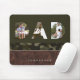 Celebrate father's day with our rugged and masculine camo and faux leather personalized "DAD" mouse pad. The design features "DAD" letters with each letter displaying your own special family memory photo. Dark army green with army camouflage pattern paired with brown faux leather to create a stylish rugged look. Camo artwork by Moodthology.