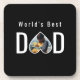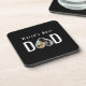 Dad Photo in Black Heart Frame Modern Text Beverage Coaster