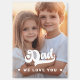 Fridge magnet featuring your custom photo and the text "Dad, we love you" flanked by little, white hearts.
