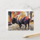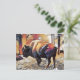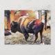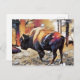 In the Dadaism art style, an image of a plains bison in a woodland area. The colors are due to the fall foilage behind the Bison.