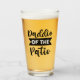 Is your Dad the coolest father on the patio? Does he use retro language like Daddio or have a sense of humor? This glass features the text "Daddio of the Patio" in black text on one side of the glass. The words "Daddio" and "Patio" are in script black typography, with "OF" and "THE" is in clear type against a black banner. This glass would make a great present for Father's Day, a birthday, or any day you want to honor your chief griller of the patio. You can opt for a different style glass if you prefer.