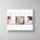 A custom 3 photo wall hanging with "Daddy We Love You" and a space to add your names underneath. Main text is set in a simple, modern typeface in black with a contrasting typewriter font in soft gray. A great gift for father's day, birthday or Christmas. Personalize with your photos and names on the product page. Further changes can be made using the customize further tab.