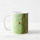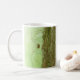 A watercolor painting of a daddy long legs making his way up the bark of a tree adorns this mug!