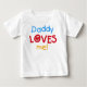 Daddy Loves Me T-shirts, bodysuits, magnets, cards, stickers, tote bags, stickers, and other items with blue, red, and yellow text design and little red heart that reads Daddy Loves Me!