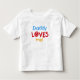 Daddy Loves Me T-shirts, long sleeve tees, sweatshirts,pullover hoodies, hats, ruffle shirts, sleeveless dresses, ruffle dresses, raglan T-shirts, football bodysuits, organic bodysuits, and other apparel for baby with text of red, blue, and gold with a heart that reads Daddy Loves Me!