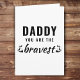 Daddy you are the Bravest Father`s Day Card. The bravest dad card. Personalize it with your message and names. The text is black typography. You can change any text or erase it.