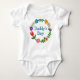 Celebrate the birth of a friend's baby boy with this cute white bodysuit sporting the text "Daddy's Boy" in ocean blue inside a frame of colorful flowers