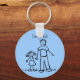 Father and daughter hold hands. The man's shirt read "daddy" and the little girl's dress reads "me". Add your own names for a special father or daddy gift! This parent and child family picture also comes in color as a brunette or blond family. There is also a version with the title of "Daddy's Girl". Make a personalized family keychain with your own text and images using the "Customize It" button!