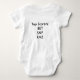 I love this onesie, it's adorable! The material is amazing so soft and the color is a perfect sky blue. When my daughter-in asked me to help with her Baby Shower, I was thrilled. It was co-ed & the theme was Cookie Monster. I had no idea that the whole world was after that big blue Monster. Thank goodness for Zazzle, I got most of the party supplies here. Then I found this onesie! They made my customization so easy. The colors are awesome. I wrote the word "Loved" across the bottom of the Cookie Monster in red letters when I was putting it together. I saw the preview & liked it. But to see it in person, OH, it was fantastic, they do exceptional work! I am so glad that I found this onesie/bodysuit. The production time and shipping were exactly what I was told, which made it easy to plan the party. Packaging was nice as well. If you are looking at this product, look no further, I highly recommend it! I'm certain that I'll be back to "design" whatever my new Grandson "needs.". The printing on the onesie/bodysuit is crisp, and clean. With perfect colors that blend well with the blue background of the basic material. We are so happy with how it came out.