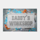 This doormat is perfect for the dad who loves tinkering in his workshop or mancave. It has an industrial masculine design featuring distressed cement with a metal sheet background surrounded by tools like a wrench, saw, measuring tape, hammer, and text "Daddy's Workshop".