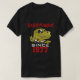 My 11 yo wore adult XL (5’7” 165#). The 8yo is small framed. She wore adult small and tied it in the back. Grandma wore adult large with long sleeve shirt underneath. Tall girl adult medium. Dark haired male adult large. Good quality dark Heather gray, Gildan brand shirt. -it was next up from basic choice and cost about $20 per shirt. Not too thick or thin. Washed and dried well, no major shrinkage. Not see-through. Can wear a bra under it fine. Screen print is just as shown and well done, front and back.
