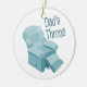Lightweight, smooth, pure white ornament with nice sheen. Perfect size to be seen from across the room ... and to attract closer inspection! Price was great for ordering enough for the whole family! Clear, bold black design just as requested. Matches the order exactly. Just so nice!