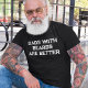 Dads with beards are better funny t-shirt ideal for Christmas, father's day, or his birthday. Black shirt with white grunge letters.