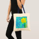 This tote bag flaunts a digital collage made up of several layers of paintings, textures and scans. The sunny daffodil "pops" off the blue backdrop.