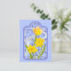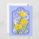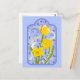 Decorative Happy Easter card; daffodils and tulip on on ornamental background, yellow, green and blue.