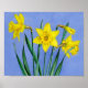 Blue sky with yellow daffodils detailed botanical watercolor poster. A print from an original botanical painting on hot pressed paper using Winsor & Newton pan watercolours and gouache. © Painted by Sarah Trett www.sarahtrett.com for www.mylittleeden.com