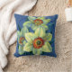Floral fine art pillow. Daffodils from original artwork on coloured paper in gouache by Sarah Trett. Vibrant print to bring a touch of spring colour to a living room or bedroom.