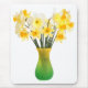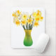 Customizable mouse pad with beautiful daffodils bouquet in a yellow-green vase on white background.
