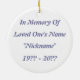 Remember your loved ones with these beautiful ornaments. Add your loved one's name, nickname and birth and death, or use them to acknowledge family members and beloved animals who are still living. Totally customizable!
